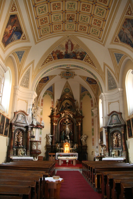 Působivé pohledy na kazatelnu a zadní loď s varhanami v jedovnickém kostele.
