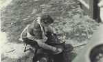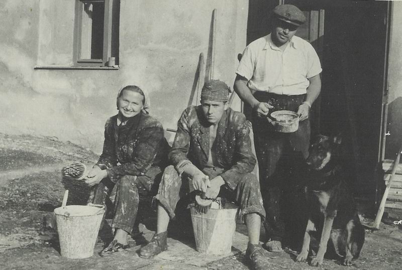 Slečna, Josef Flek, P. František Vavříček, ministranti okopávají hřbitovní cesty, 2. zprava - P. Josef Zouhar,